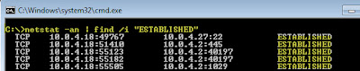 c:>netstat –an | find /i “ESTABLISHED” > EstablishedLog.txt